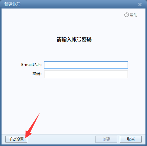 第二步:此页面不输入E-mail地址和密码,直接点左下角的“手动设置”