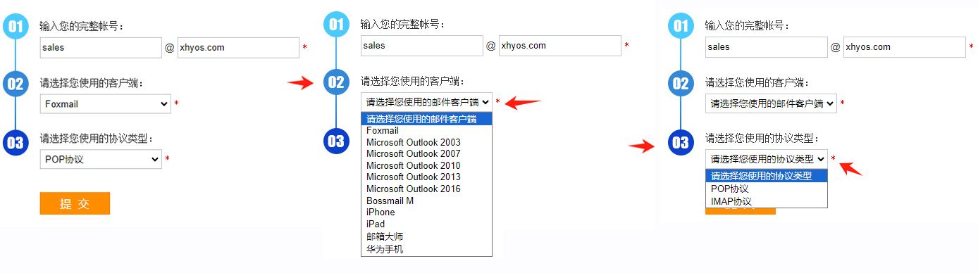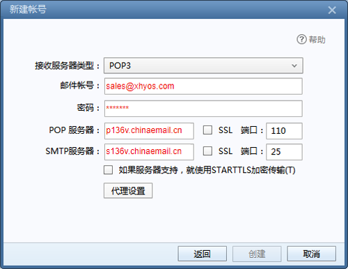 参考设置案例,如:sales@xhyos.com设置 Foxmail POP3