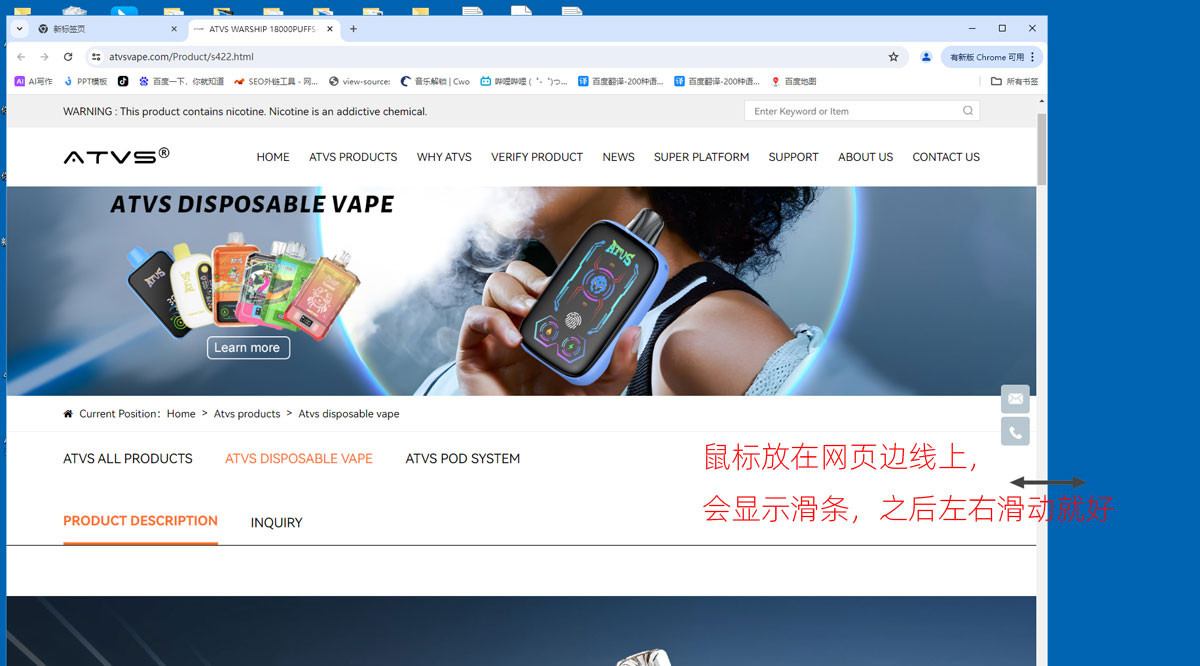 2,鼠标放在网页边线上,会显示滑条,之后左右滑动就好,